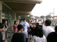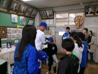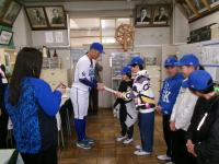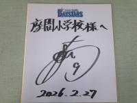 横浜DeNAベイスターズ15周年記念事業として、DeNAベイスターズキャップ(帽子)をいただきました。県内の小学生に配付されるもので、座間市では本校の6年生が代表して受け取りました。来校されたのは京田陽太選手。現役選手の来校に子どもたちは大喜び(大人も)。創立130周年の今年、また一つ思い出ができました。
