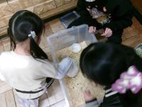 クイズにこたえてゆきちゃんと遊ぶスタンプラリーが人気です。ゆきちゃんは雪のように真っ白なモルモット。今日は1年生が対象の日。飼育委員会の6年生ががんばって大盛況でした。