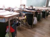 1月23日(金)11時ちょうどにサイレンが鳴り響きました。シェイクアウト訓練開始です。「ドロップ・カバー・ホールドオン」。一瞬で子どもたちの姿が見えなくなりました。机の下に入り身を守っています。
