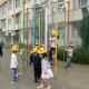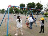 今日から1年生の外遊びが始まりました。休み時間のチャイムとともに、校庭へかけ出す1年生。たくさんの黄色い帽子で校庭がいっきに華やぎます。上級生に手をひかれて遊ぶ姿がほほえましいです。