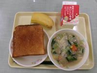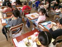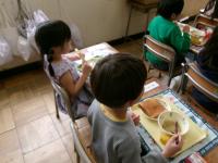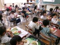1年生にとって人生初の小学校給食。メニューは、ワンタンスープ・ラスク・バナナ・牛乳です。ぐらぐらの乳歯を気にしながら、「おいしー」とほおばる姿にほっこりします。たっくさん食べてくださいね。お手伝いに来てくださった保護者の皆さま、ありがとうございました。
