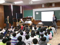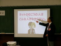 3・4年生を対象に、講師の先生をお招きして携帯電話教室を開催しました。子どもたちの携帯電話所持率が上がる中、携帯電話やインターネットをいかに正しく使うか、全ての情報が正しいわけではないこと、携帯電話による犯罪など、子どもも大人も正しい情報を更新することが大切です。