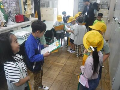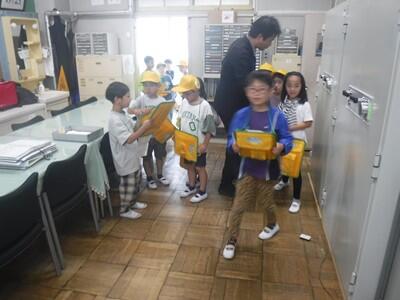 2年生が1年生を連れて、学校内を探検して1年生に学校の施設などを説明してくれました。2年生は1年間で成長した姿を見せてくれました。